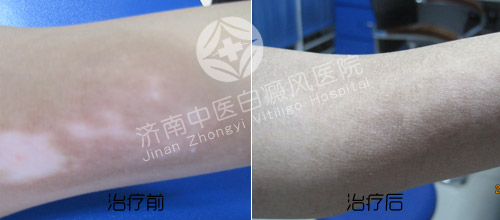 患者信息:张帆(化名),手部出现白斑把张帆父母吓坏了,张帆父母了解一些白癜风的常识,随后就领着小张帆到当地医院治疗,三个疗程下来,手上的白斑恢复了。然而好景不长,半年后张帆手背、手腕的白癜风反复了。