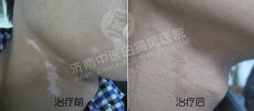 治疗过程:小陈十分在乎自己的容貌,立即医院进行治疗,但因检测不准确,治疗效果不。小陈的父母在网上无意间看到济南中医白癜风医院治疗技术还有环境都很不错,便来院准备做后一次尝试,在经过一点时间治疗之后,白斑已经明显减少。
